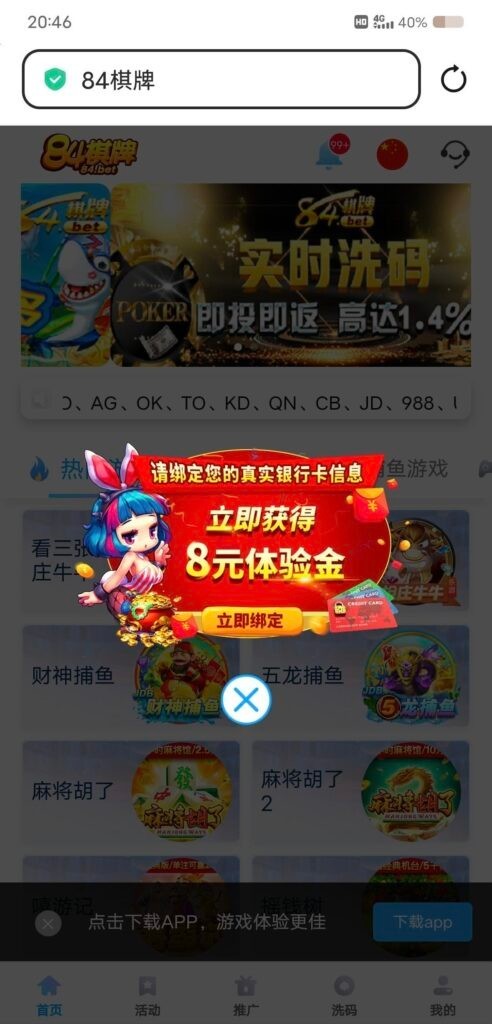 【84棋牌】——注册彩金