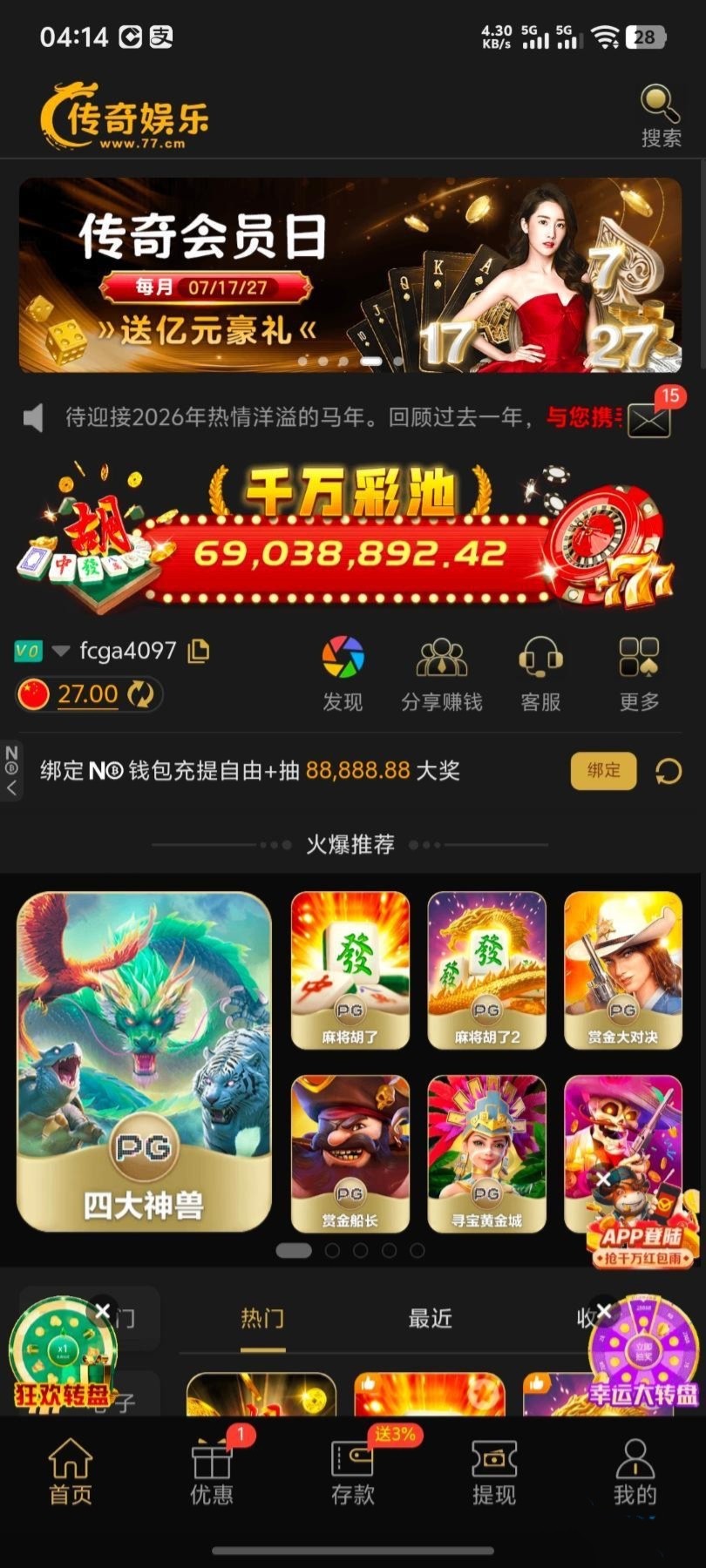 传奇77特邀送27