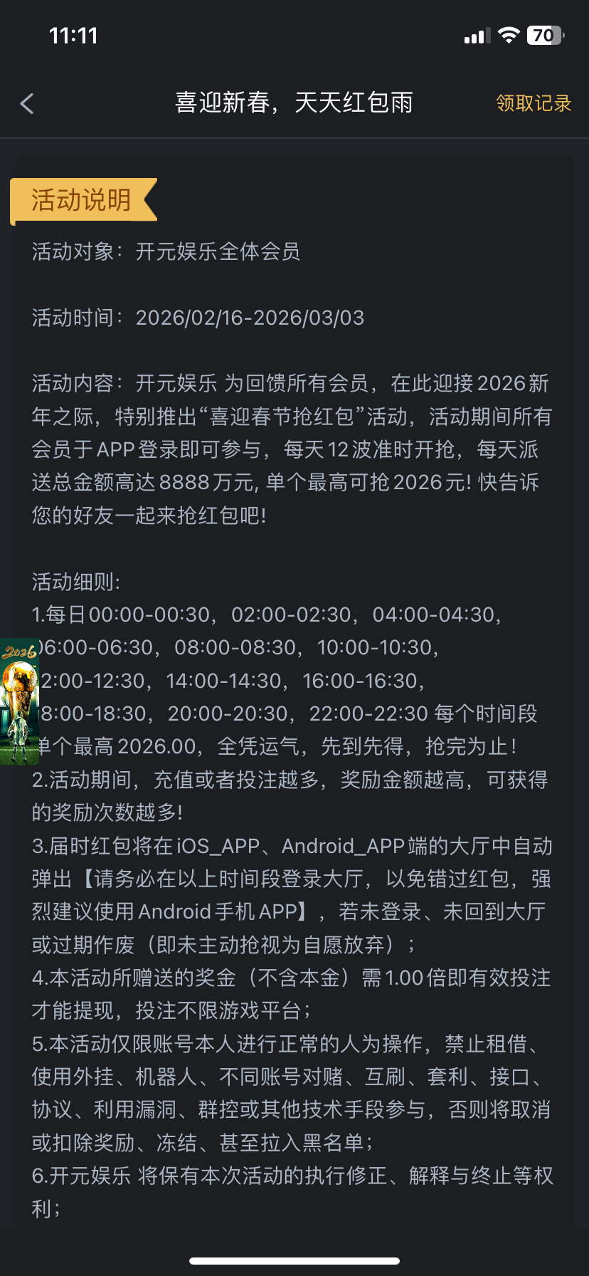 4019开元 红包雨活动