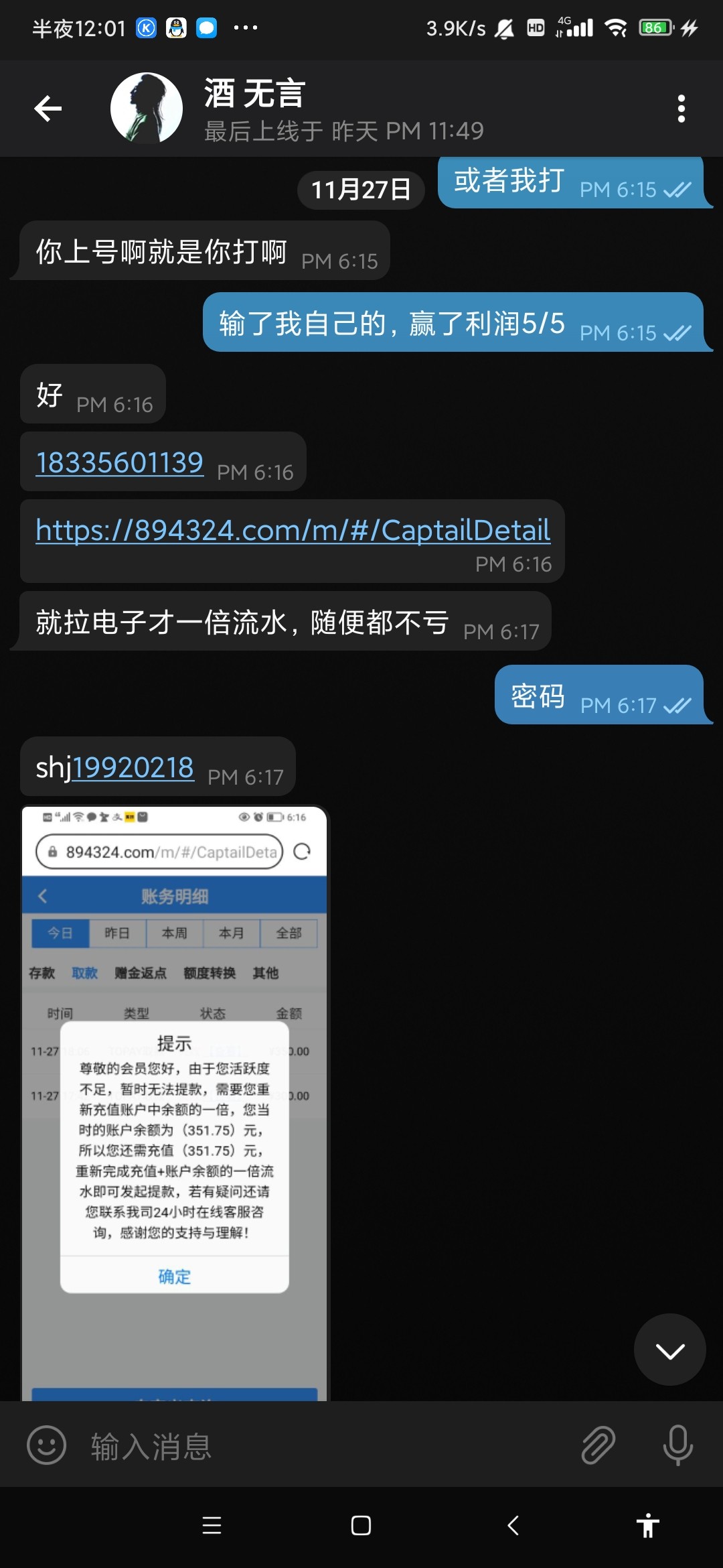充了7500打3w水要个口没问题吧 他告诉我我没充值