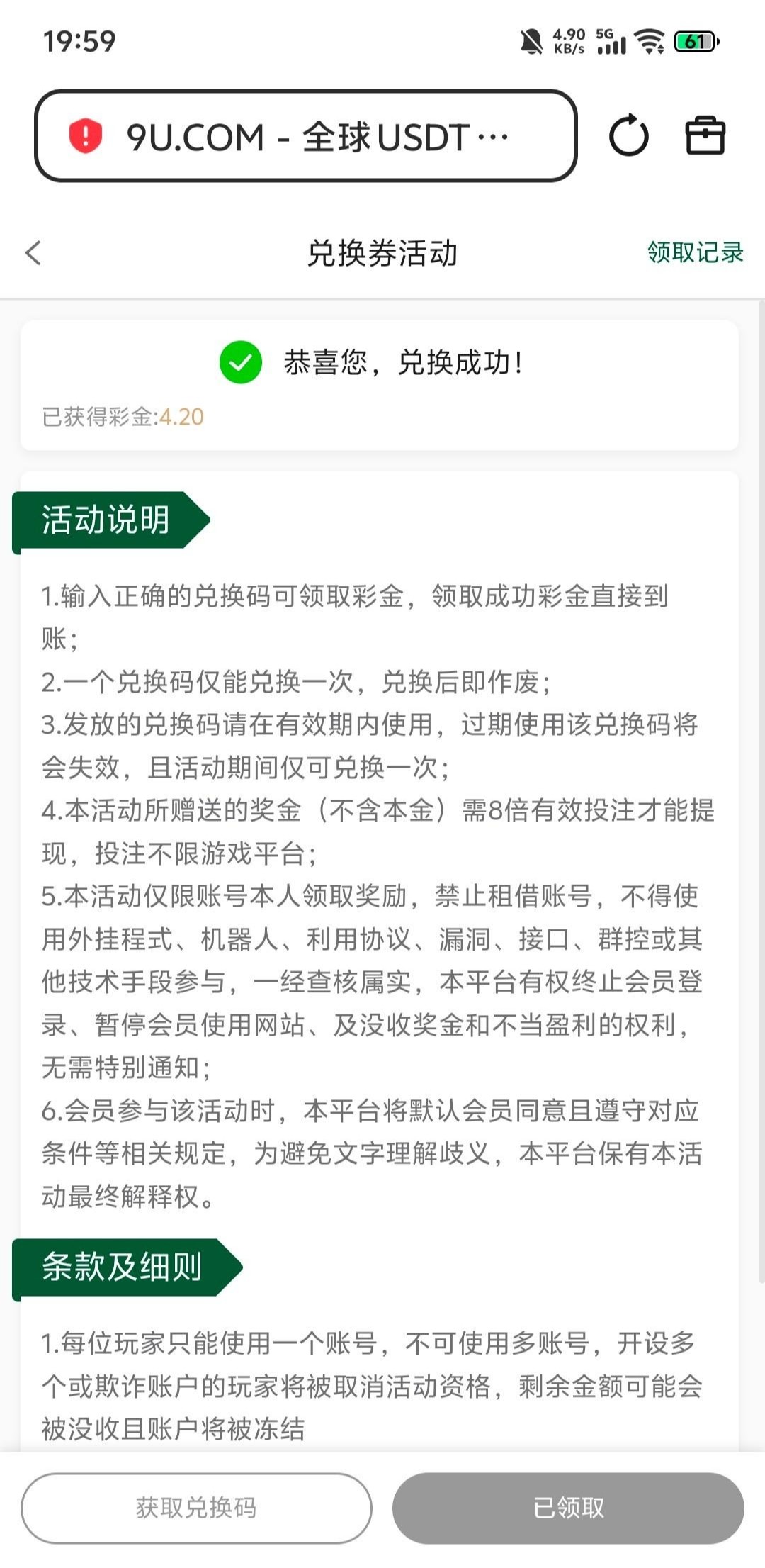 【9u国际】——兑换码彩金