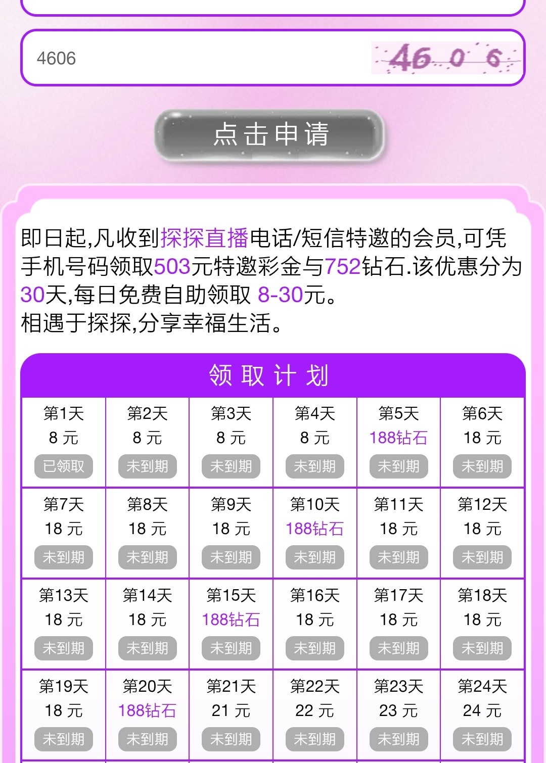 电话彩金,有没接到的电话可以去试试,活动里面自助申请