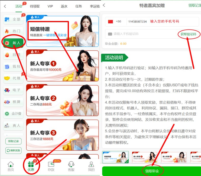 特邀短信验证领取6块