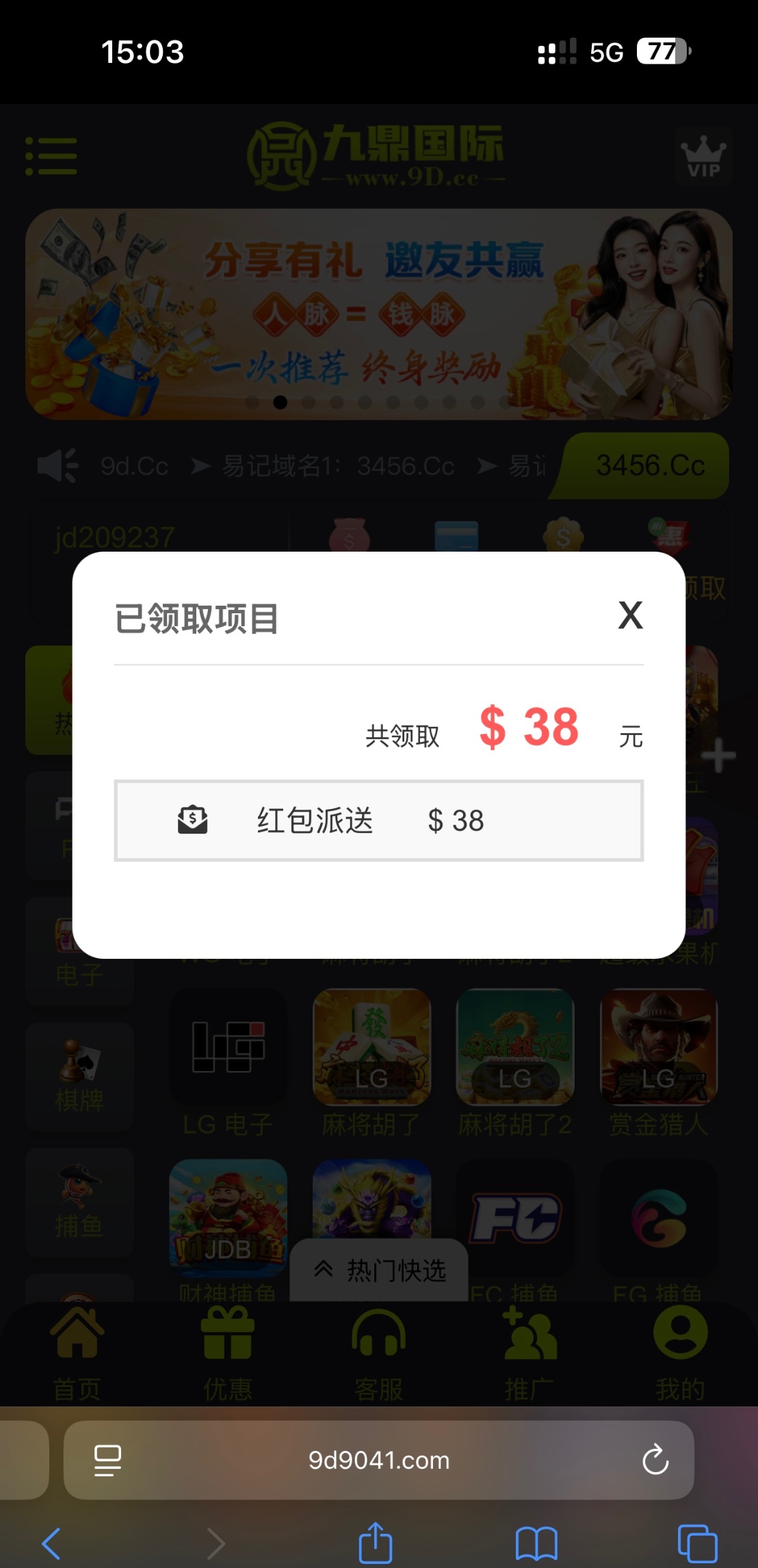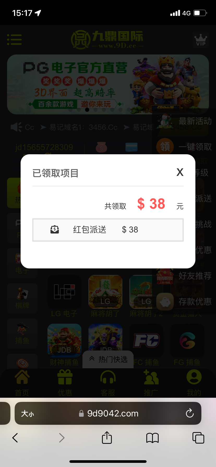 确实有,没接电话, ,登陆就给了,九鼎很久没给我送彩金了