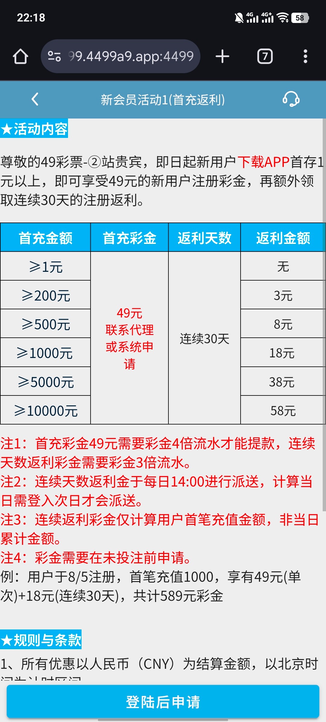 存1元送49元的新用户彩金