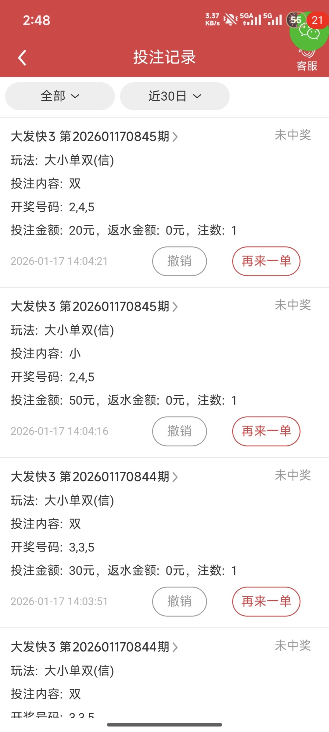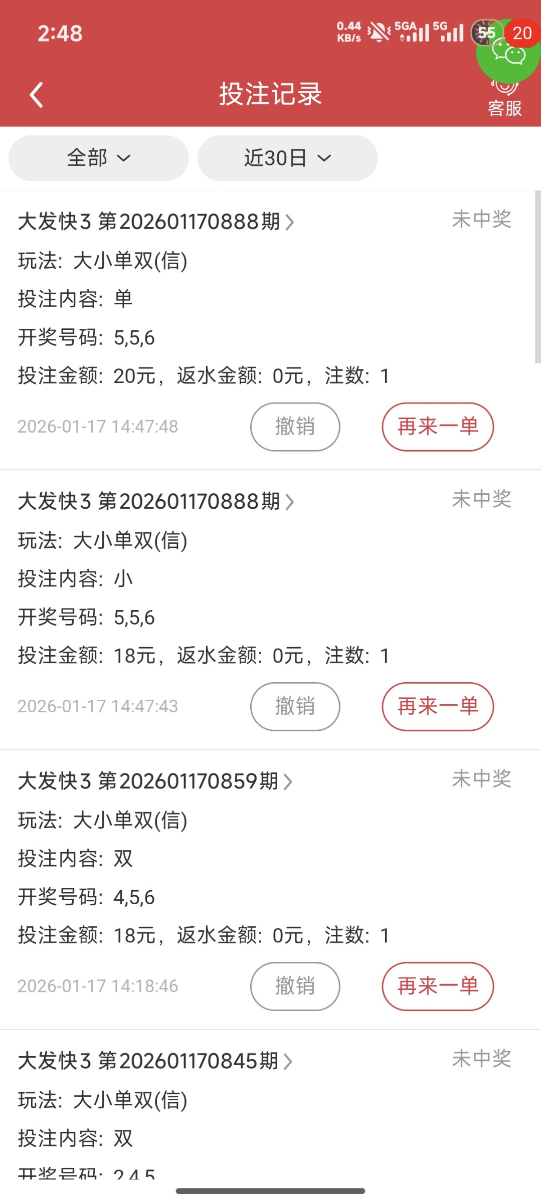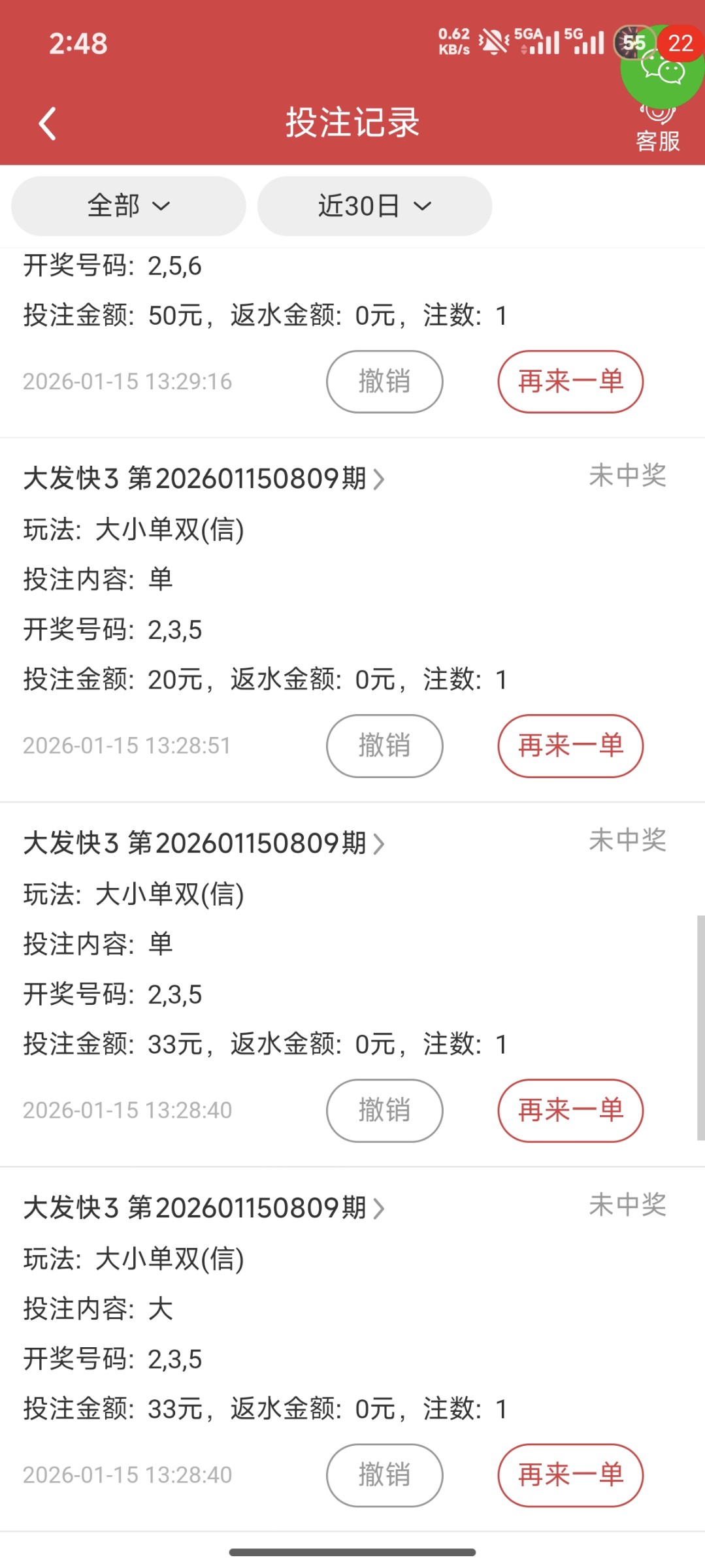 连续10多把不中