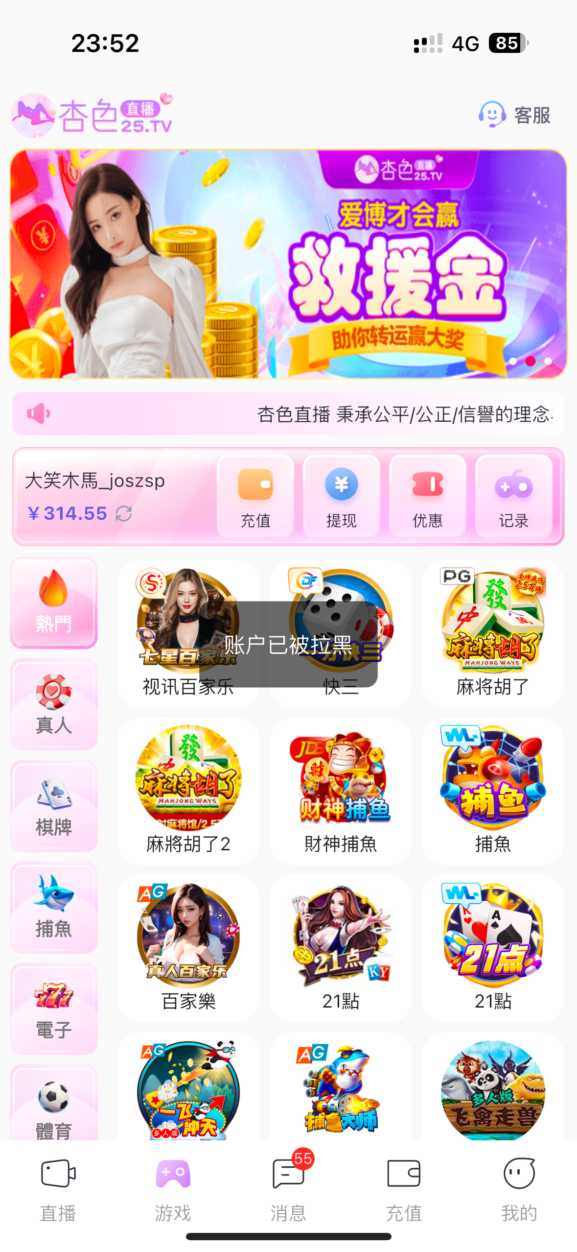 打电话来说登录送彩金,没接到的可以去碰一下,登录没到的话可以找下客服碰一下,有就有,没有就没有,网址25.tv