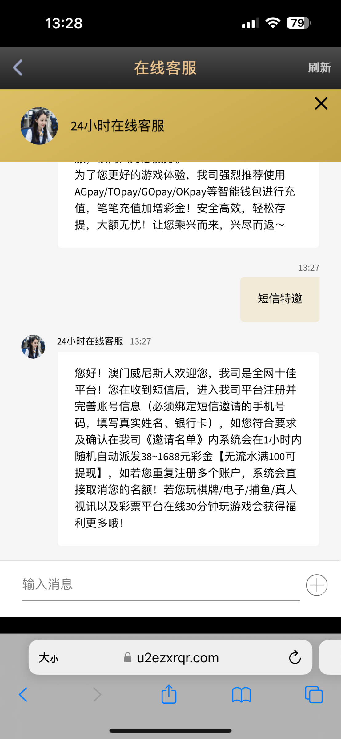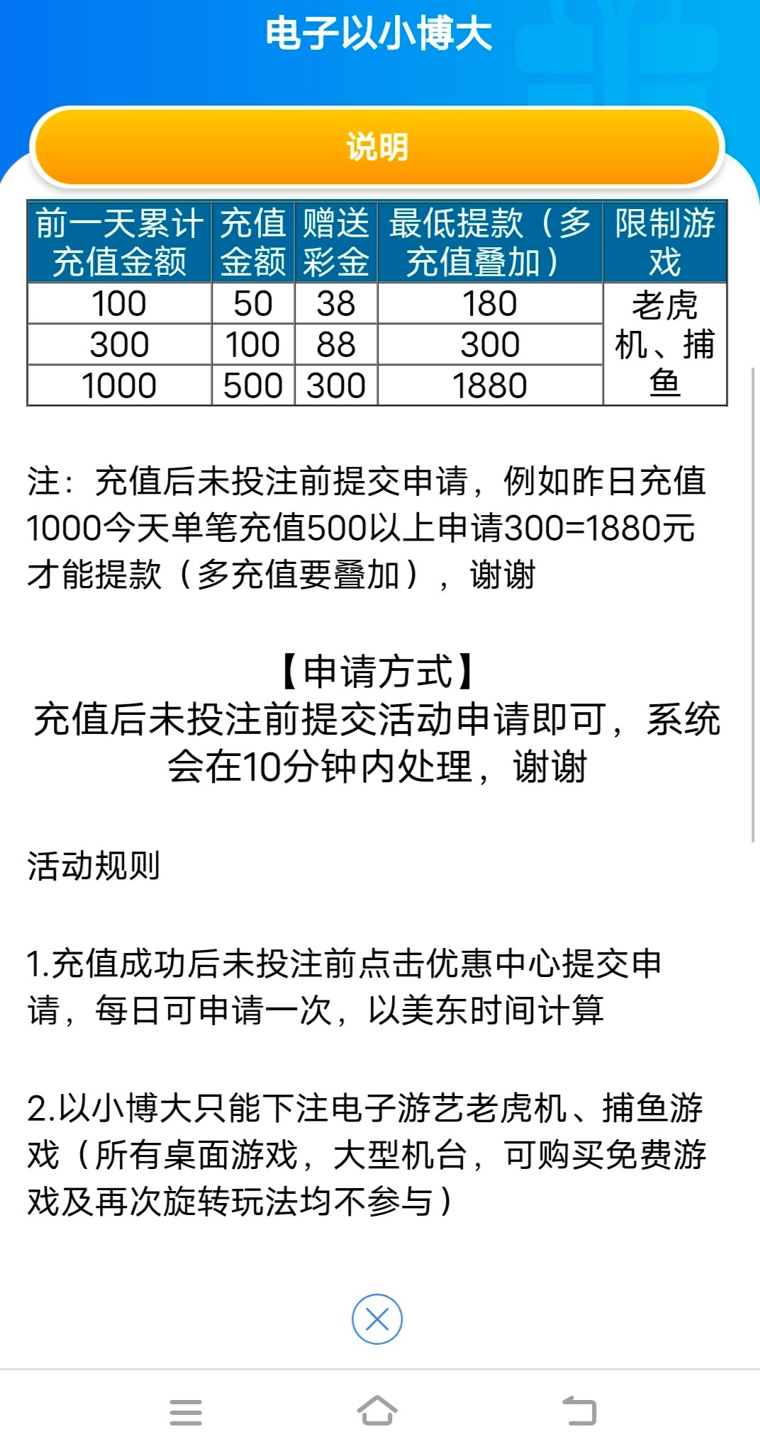 哼,笑死了。老子我tmd快三个月没充值了,他让我充100送100 一倍流水。虎他妈傻逼。