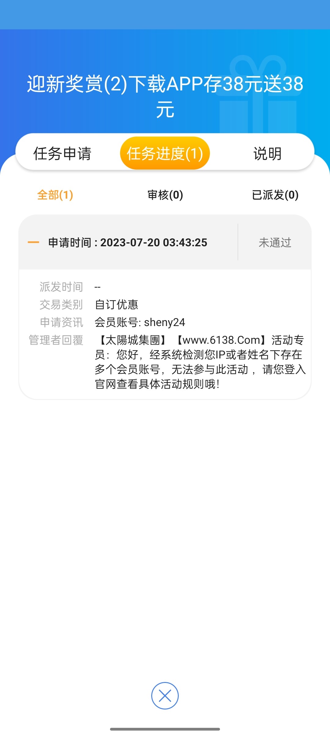 本站声明 1、本帖标题:太阳城以小博大冲38送38一倍流水 就可以提现 挺稳的