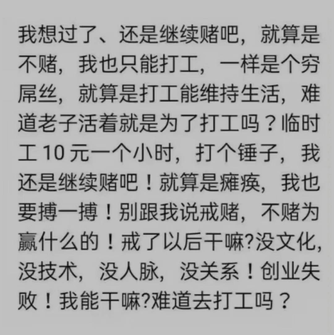 唉。他妈刚睡醒,之前为了留饭钱存定期7天的下午到期取出了,刚才1000块忍不住全部充进去完了,一直玩的pg麻将1-2,是真的超级杀,都给干懵逼了。刚刚最后的10块钱。6块一拉进免费了,我在床上真的叫出了声,最后的狂叫。以为能回个几百块饭钱就知足了,结果就爆个30块出来,最后的希望也没了。还倒欠备用金300,操了。死妈麻将,本来饭钱烟钱可以短时间不愁的。现在耍了两三个小时,烟也没了饭也没钱吃了。
