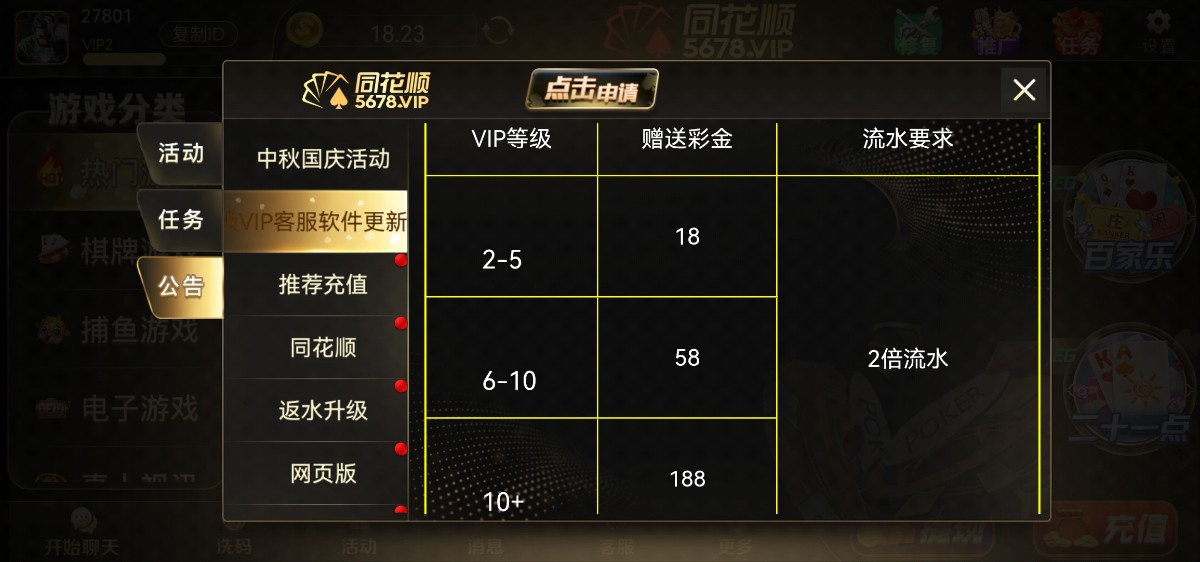 同花顺棋牌原来的316 有v2以上能领18没vip别去