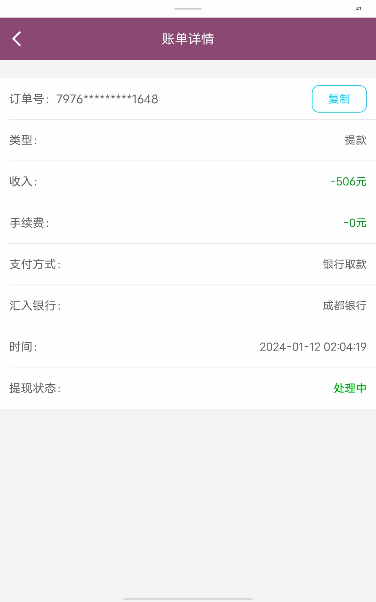 提现半个小时都没到
