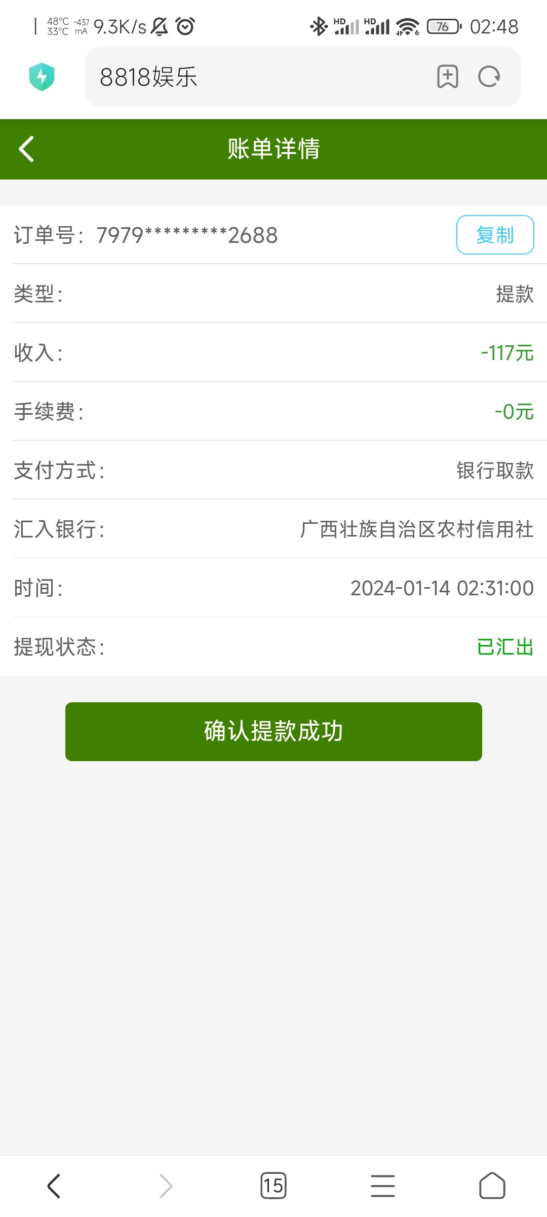 wt0355 到账了,没空汇,38过两关148出的