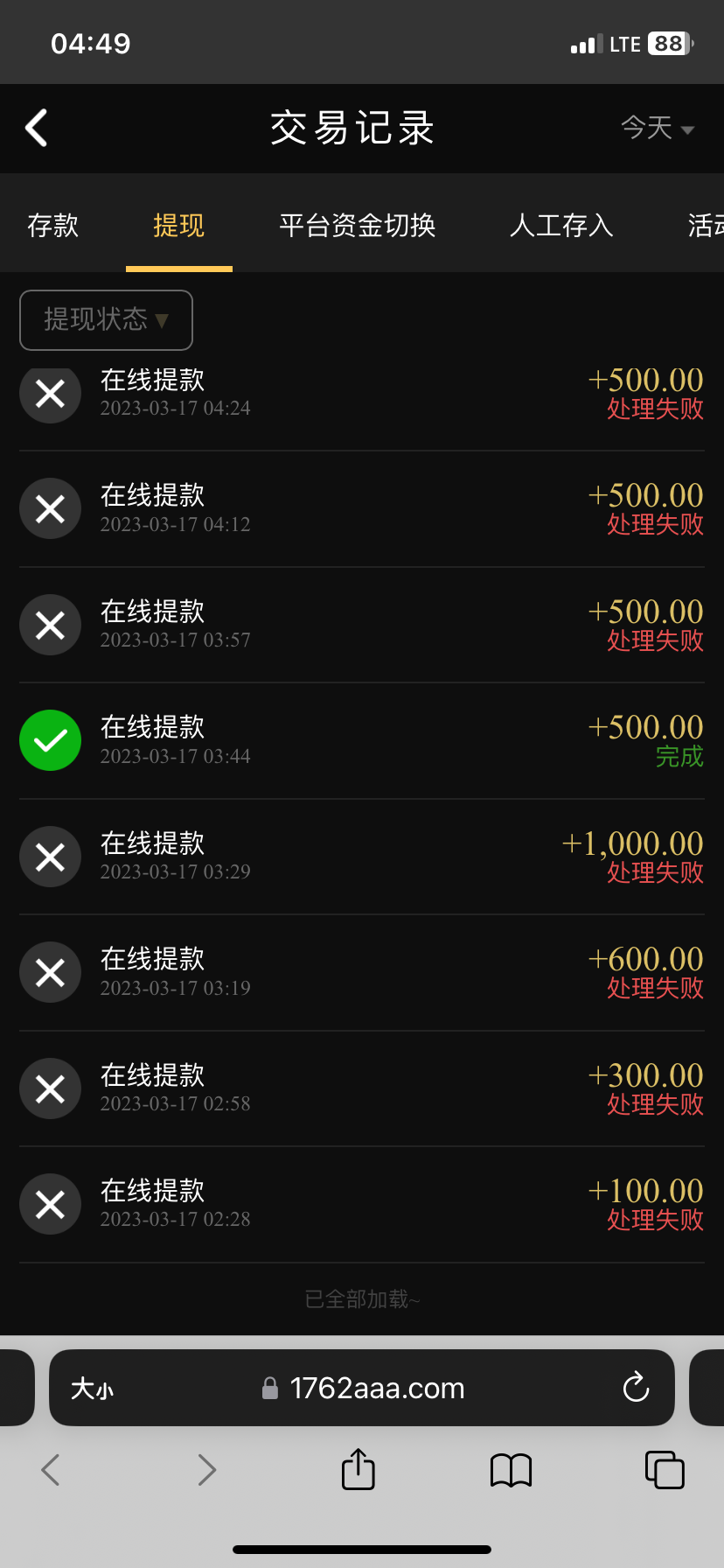 又提了300到账,哈哈,提两百退回来了,打上300到了