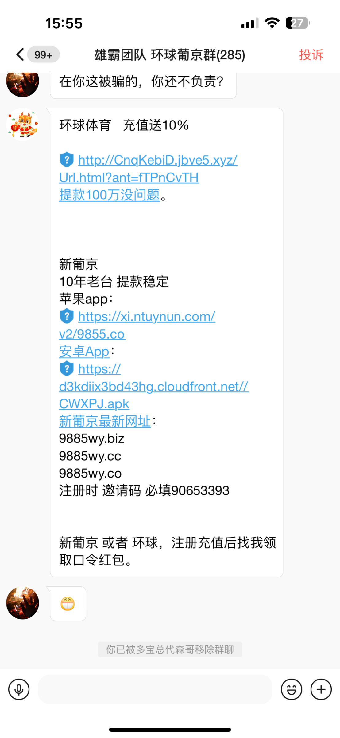 大家注意了在泡泡的老哥们注意了之前是推多好体育的黑了好多人的款项不给处理现在开始推环球新葡京死嘛杂种大家注意⚠️