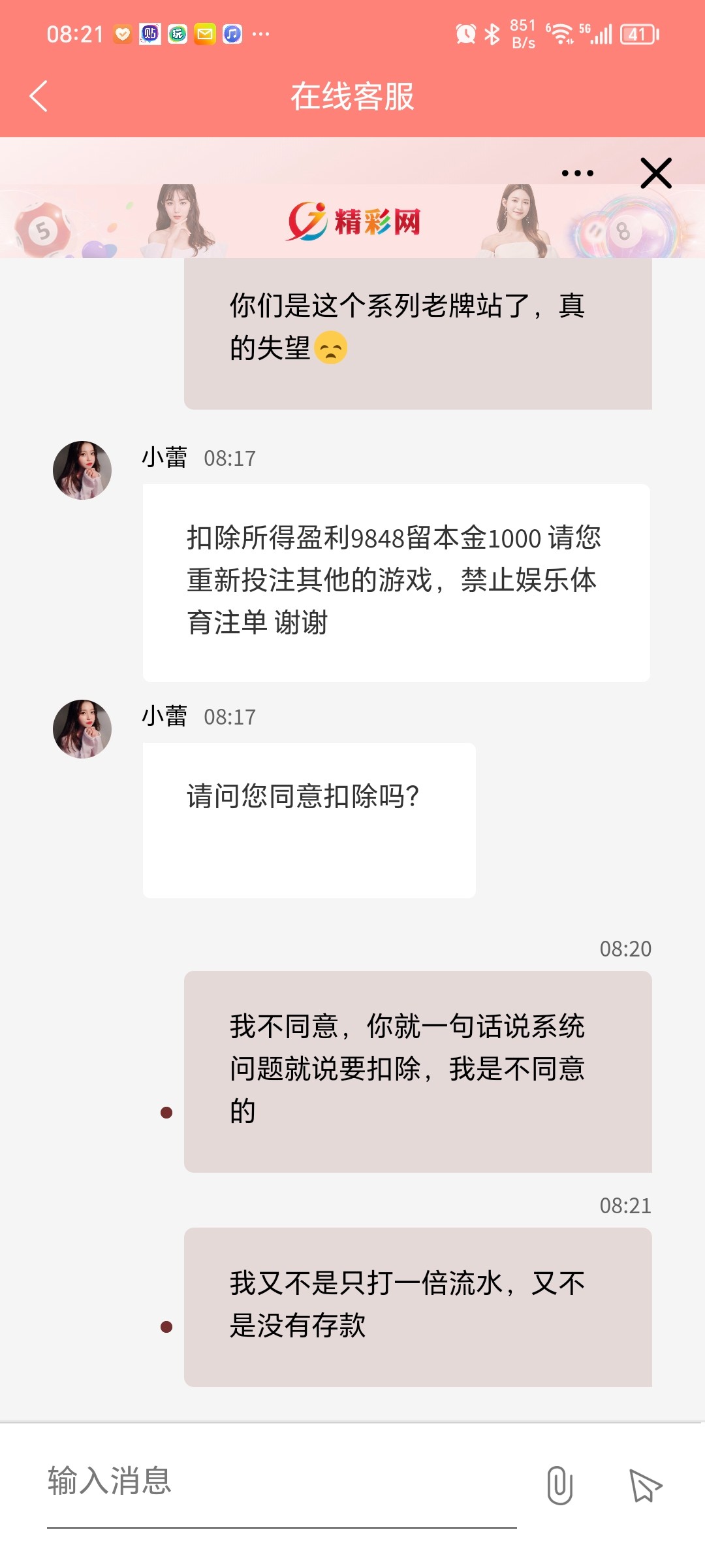 冲一千打到1万1出款只出本金,还问我同意扣除不,说不愿意就一直卡着,真的好无赖