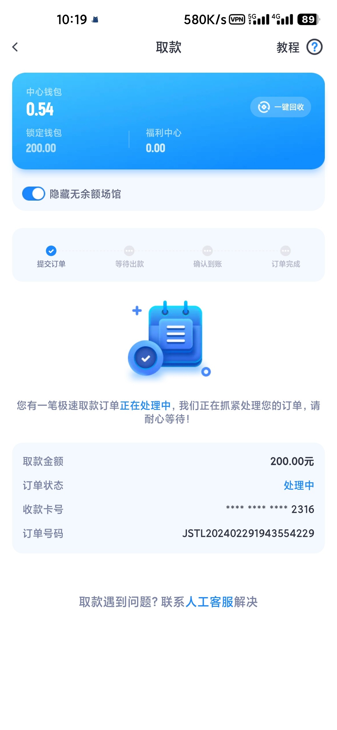 充了100送100,打够流水就出了,14了还是处理中,问客服说已经加急处理,让我等,还会不会出