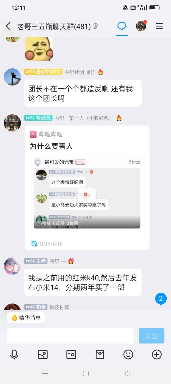 近日关于马小云买福利彩票双色球一事引发了争议! 事件发生在2024年3月7号的下午 马小云在老哥群发表了一些买双色球的言论 然后管理员禁言了马小云24小时 谁想到马小云竟然退群了, 有的群友提出疑问 还引发了管理层之间的互撕 事件言论进一步发酵到B站。马小云至今未作出任何回应  待续...