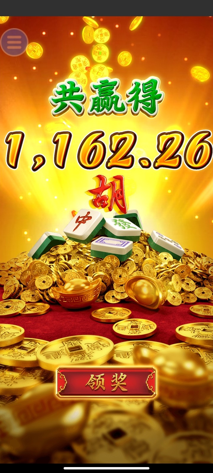 开始玩了假的麻将胡了1,输完了,后来上了100,玩真的胡了1,直接给,牛逼