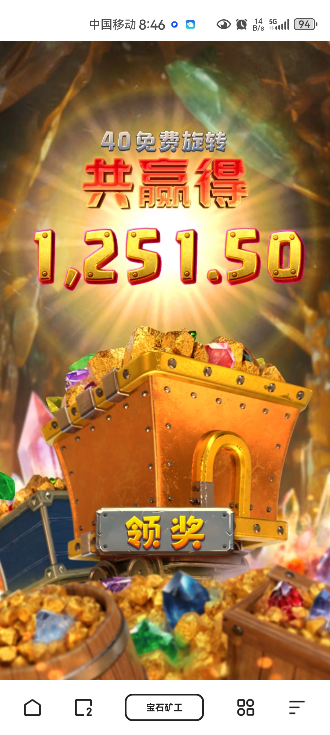 冲100,拉了100次0.4,没有免费 买了一手,竟然来免中免中免40次。一下子掉了两个大倍数,直接打够100流水提了
