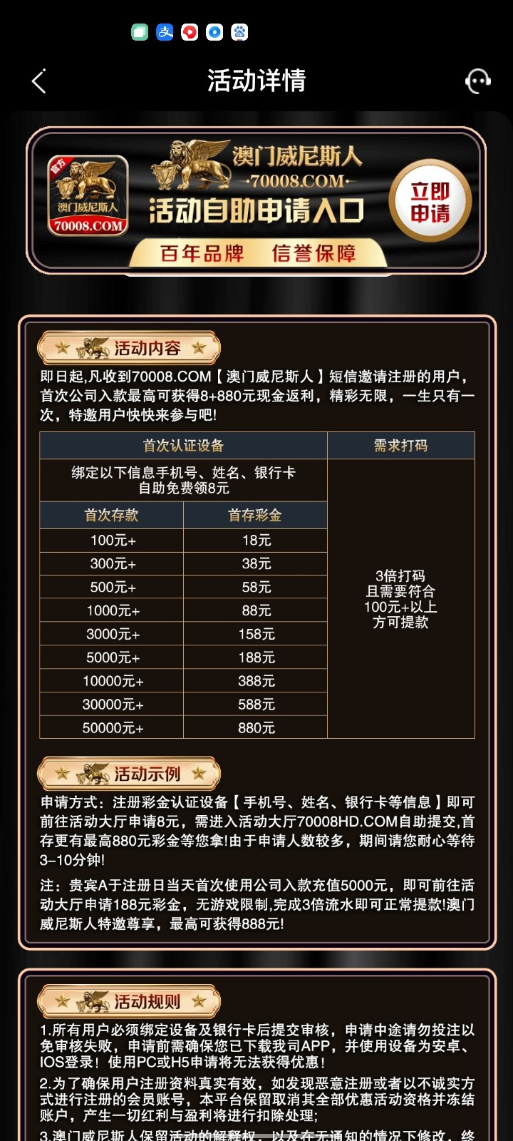 自助领取8元彩金 100