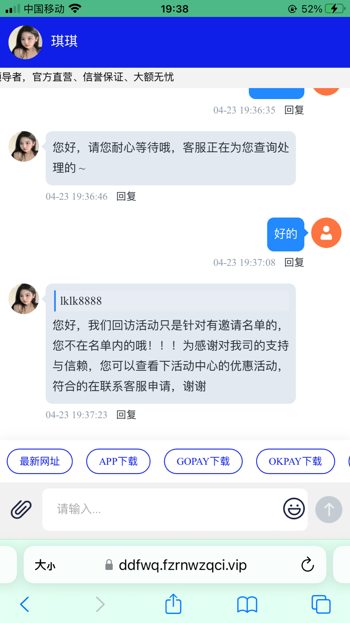 之前发过这个现在又有回馈了,老用户登录找在线客服随便提供一个境外截图说电话回访彩金,碰瓷试试碰到就是38彩金