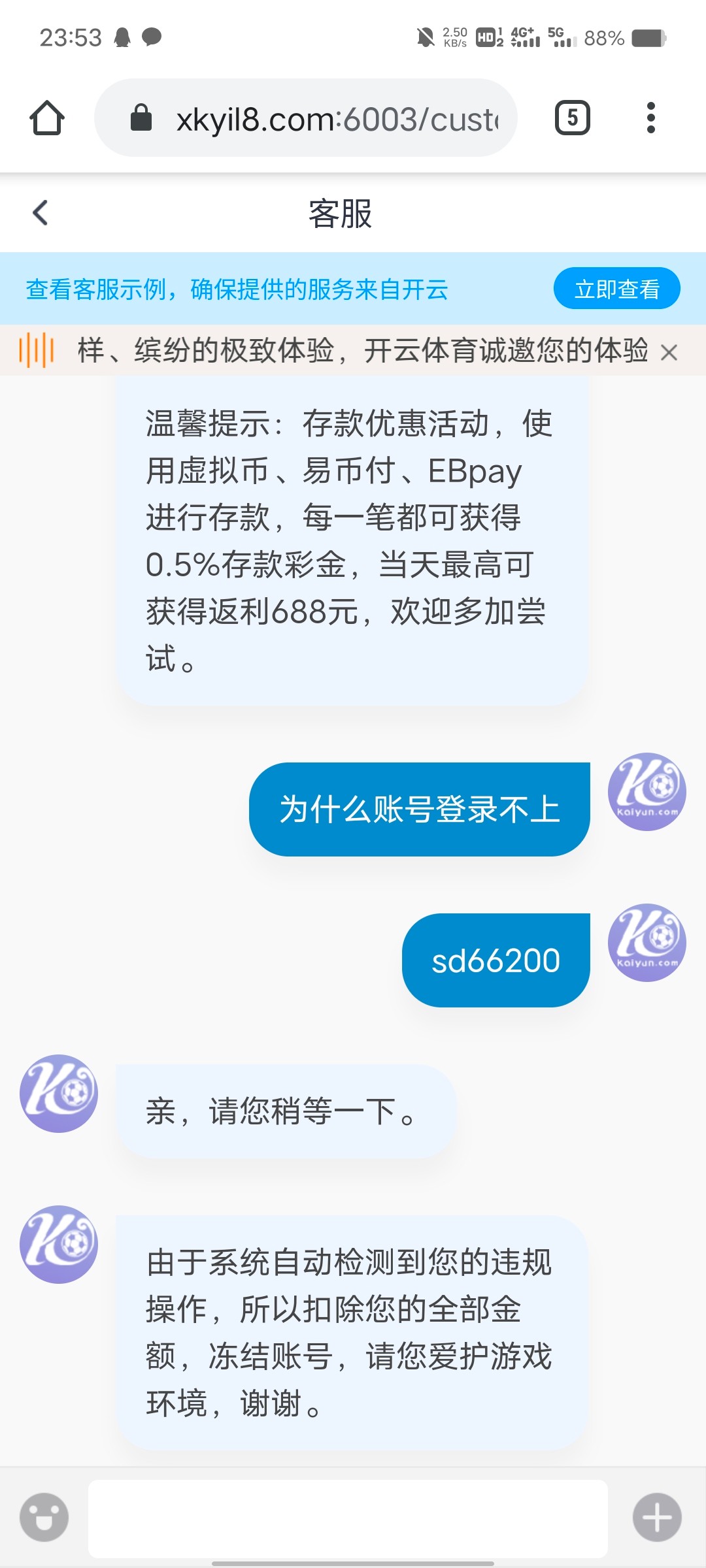 打电话说领58彩金 后面自己充了100提款300账号给禁止登录了
