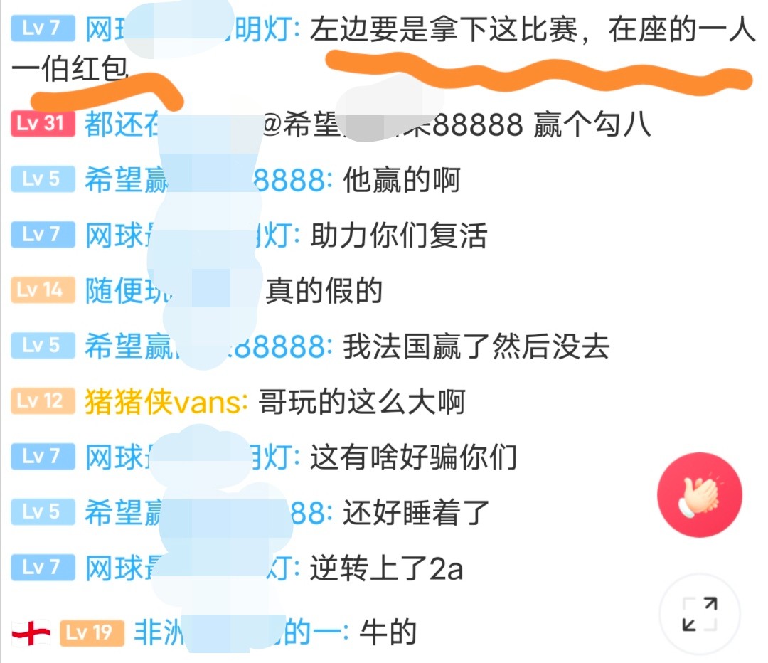 一场野鸡赛都直接干两万,正好早上聊天室人少,大哥许愿说他买的比赛要是赢了就给聊天室里的人一人一百红包,我本来以为又是瞎寄吧装b的,没想到比赛结束了大哥直接让留联系方式然后发了200的红包给我,具体给几个人发了,每个人发了多少我就不知道了,反正我是领到了,体育大佬办事太狠了