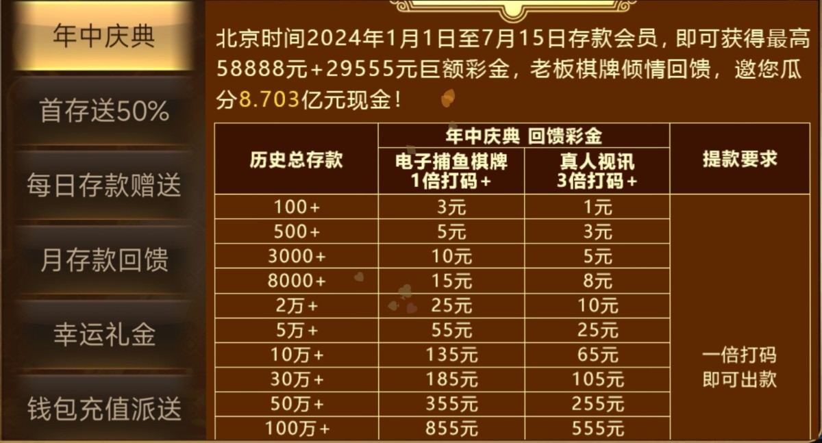 老板棋牌年中回馈