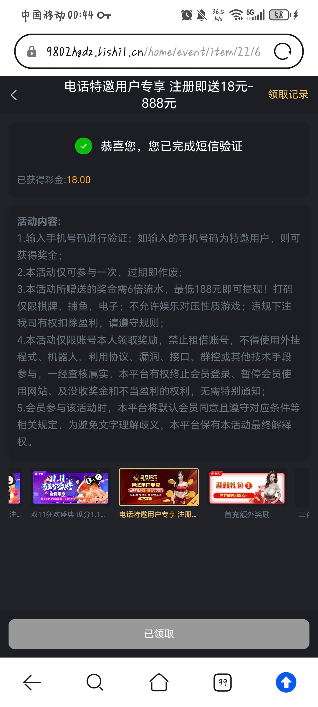 送了18,提现到账