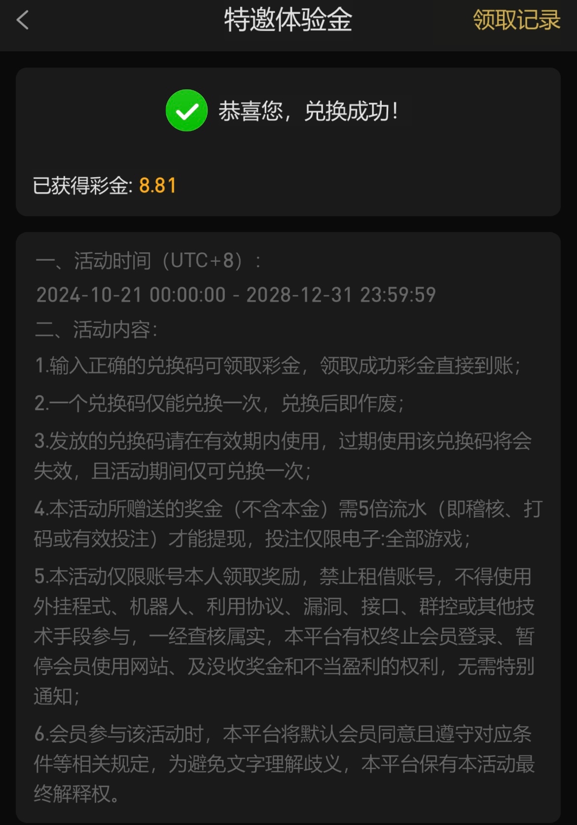 特邀体验金兑换码试试198168不行的话找客服看脸给