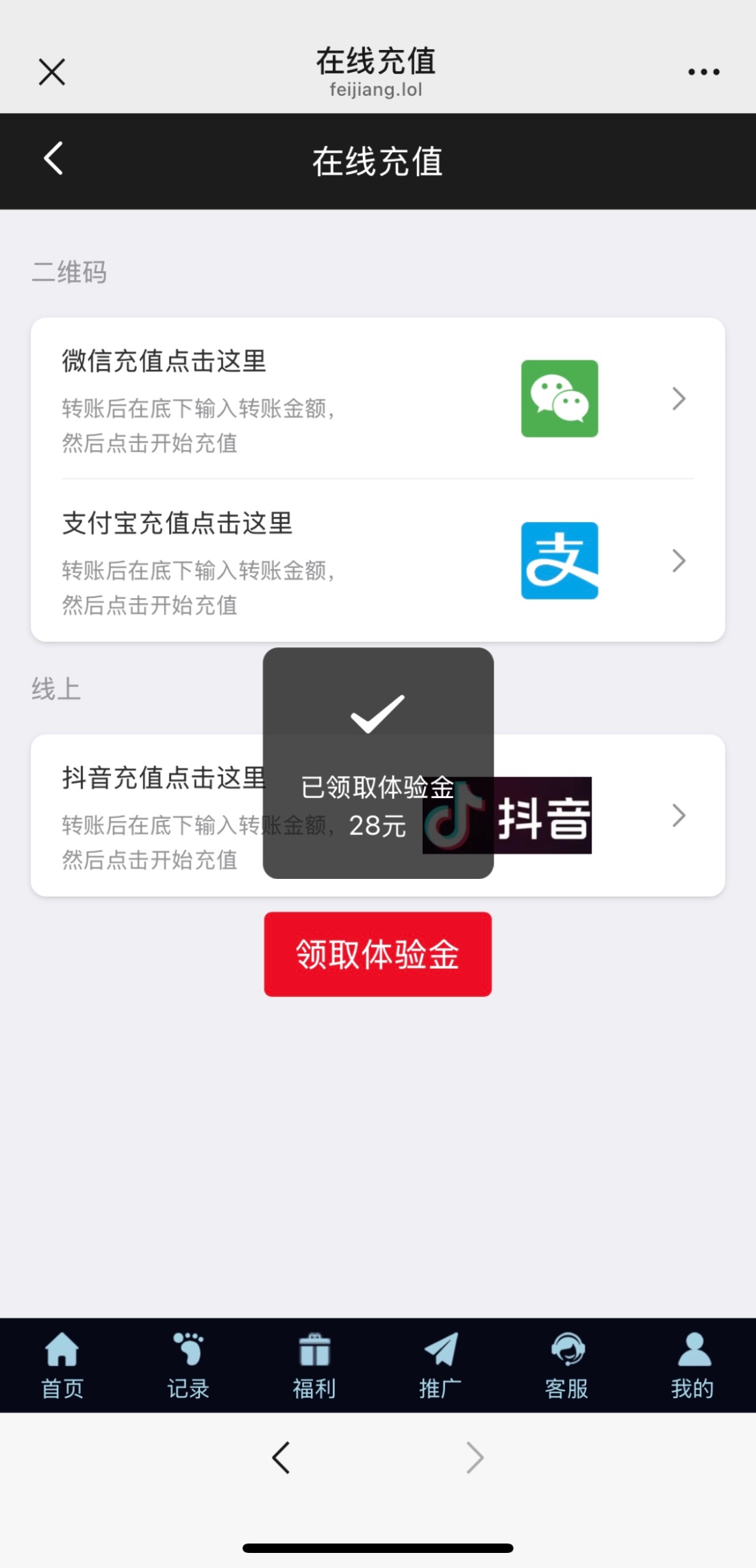 微信登录之后会让你填账号密码,不要填点自己是新玩家,充值哪里领取体验金秒28