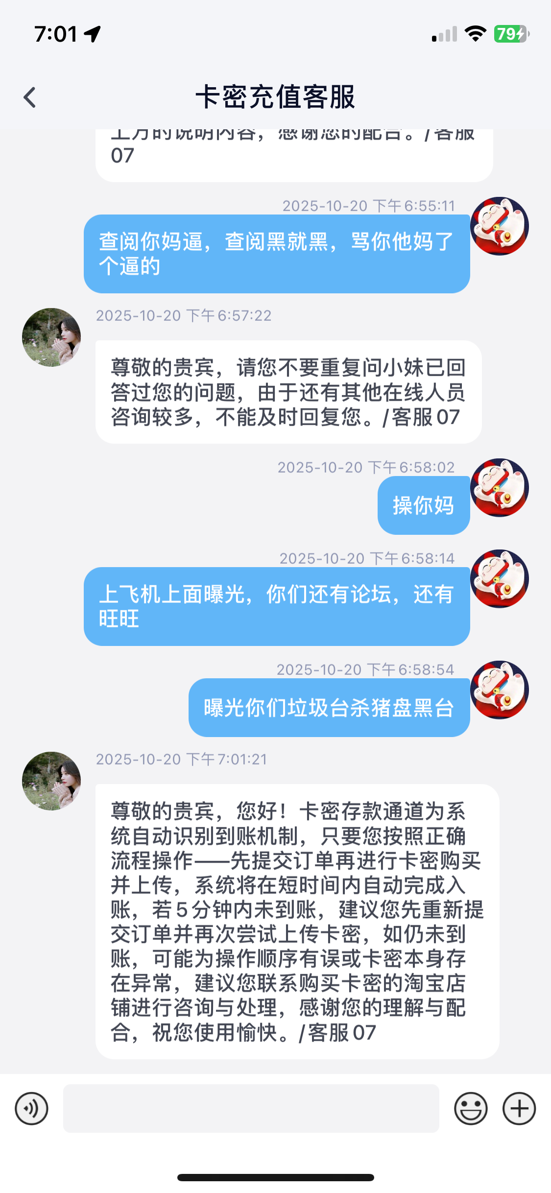 保时捷我充50卡密都要黑我刚买的卡密立马提交,他立马绑定,一直没有到帐,问客服之后一直拖从5:00拖到6:30结果他把我黑了50块钱都要黑