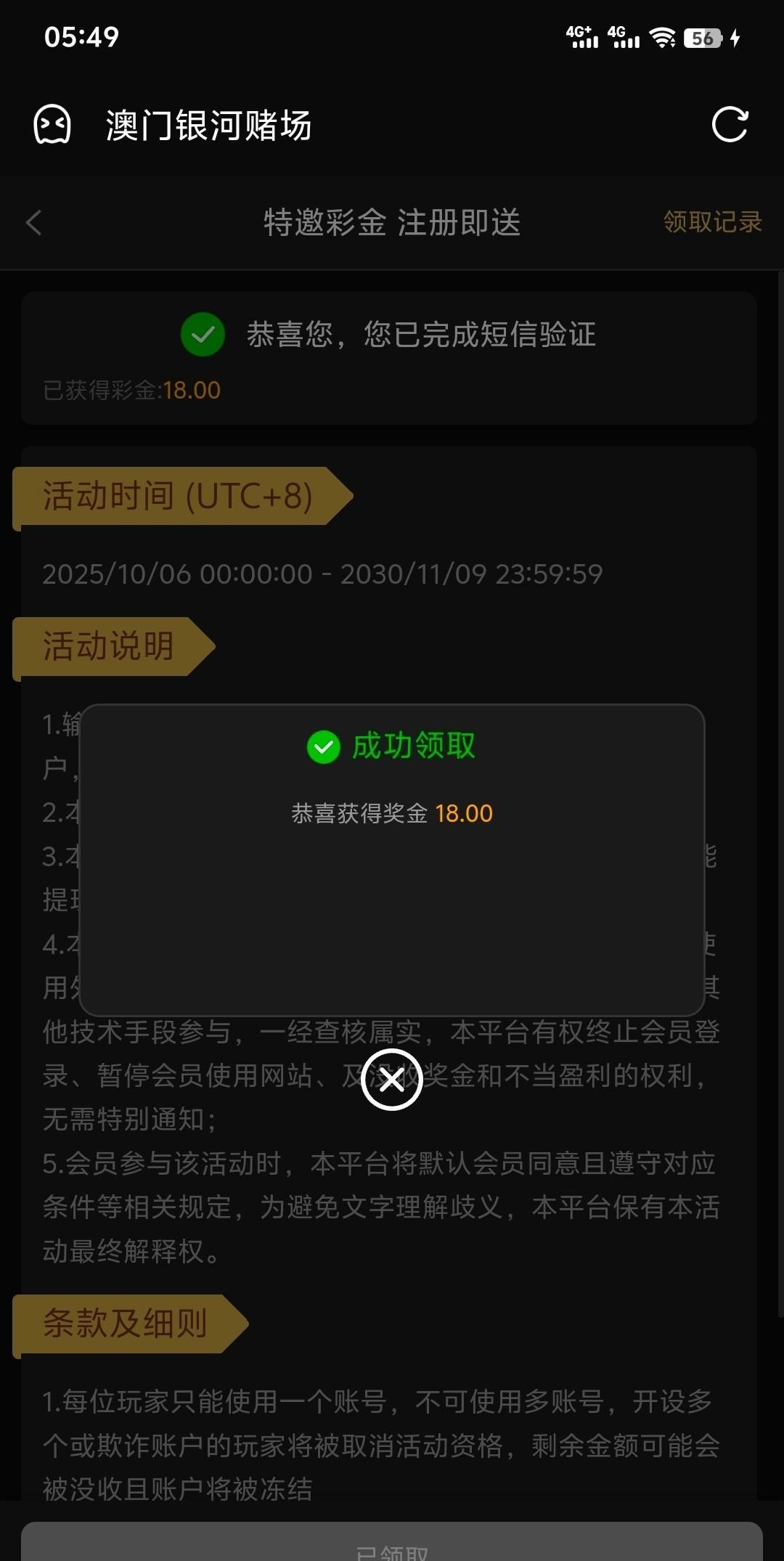 【银河595】—✅—特邀自助彩金