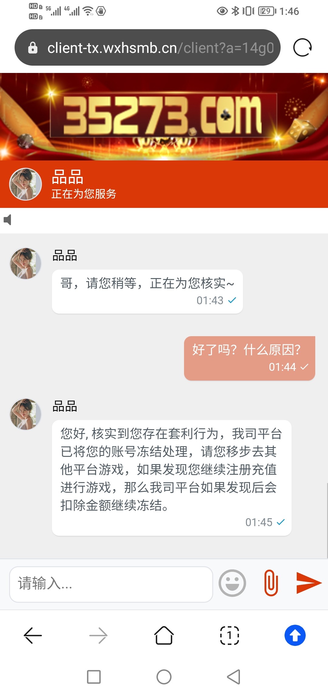 充了几十块的,之前一直没提现过,今天领了红包雨好不容易打出款,秒封号,里面还有几百块钱,真是傻逼,果然是黑台,早知道就信蛋蛋的了,果然是黑台,其他的顶级系列是半黑,这个完全是纯黑,想赢钱不可能,想白嫖更不可能,避雷避雷,