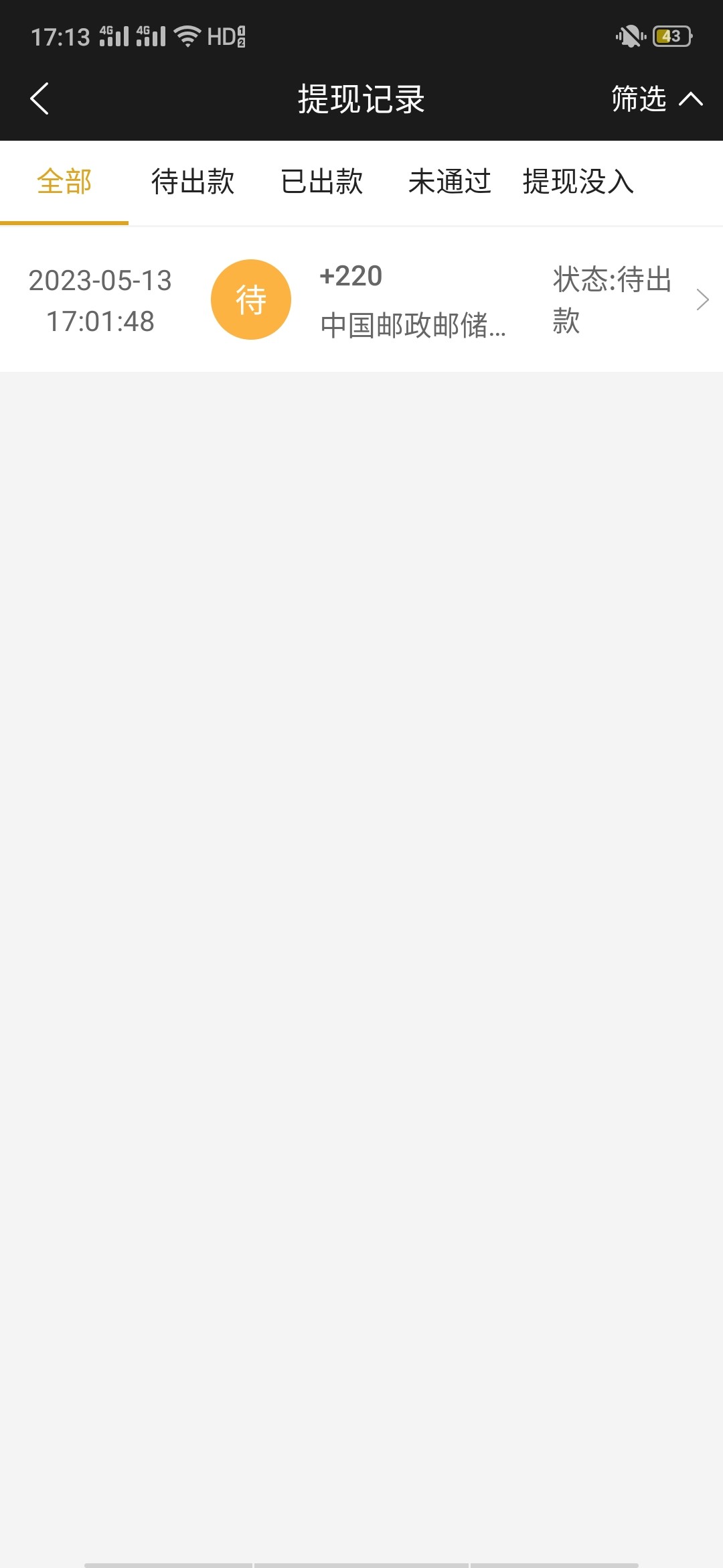 你提现多久到的,我这提现半个小时了 还在待出款
