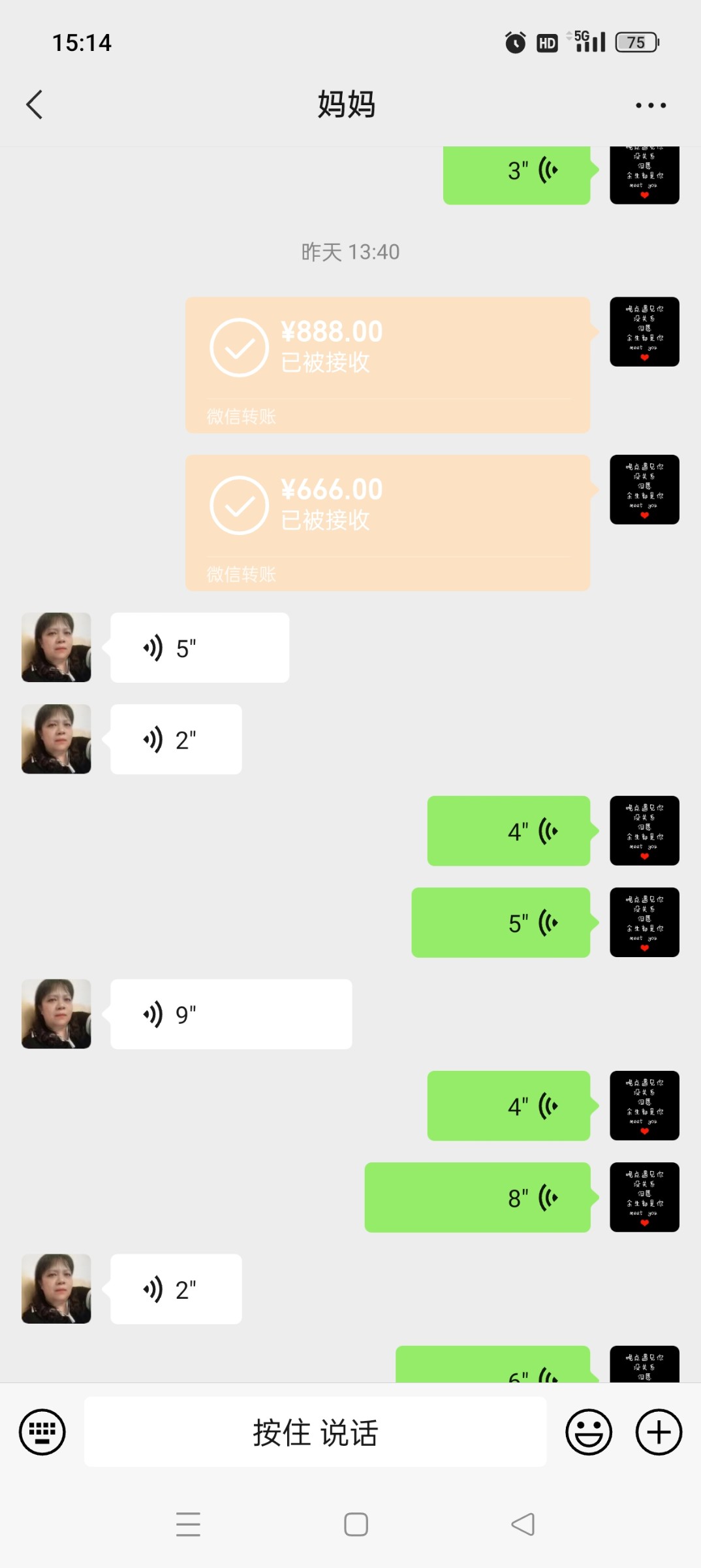 这几天红了一点。我发了一个500一个666一个888。好多年都没有给她发过了。就过年的时候给一点