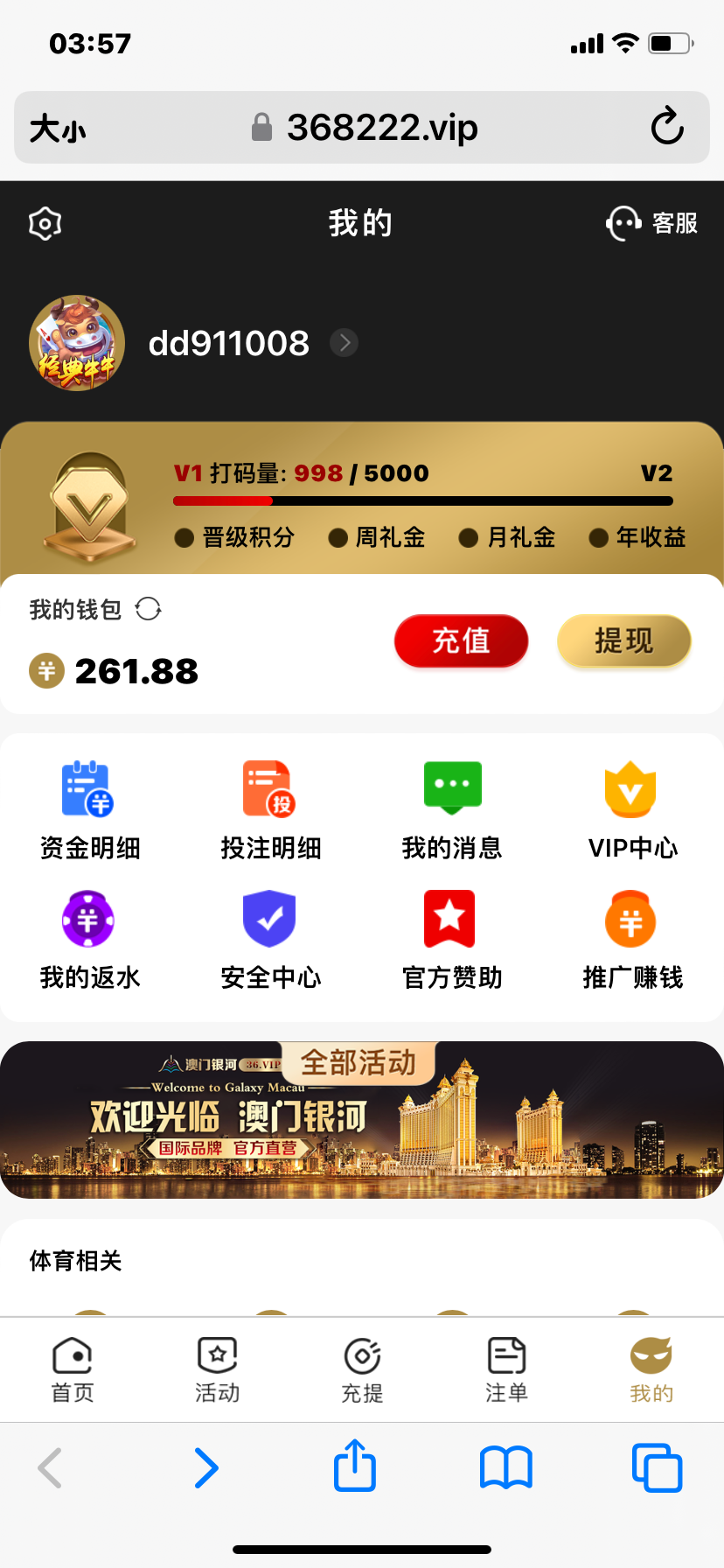 充值二百,先提现四百被黑,剩下的打到2700又输完,账号又被冻结