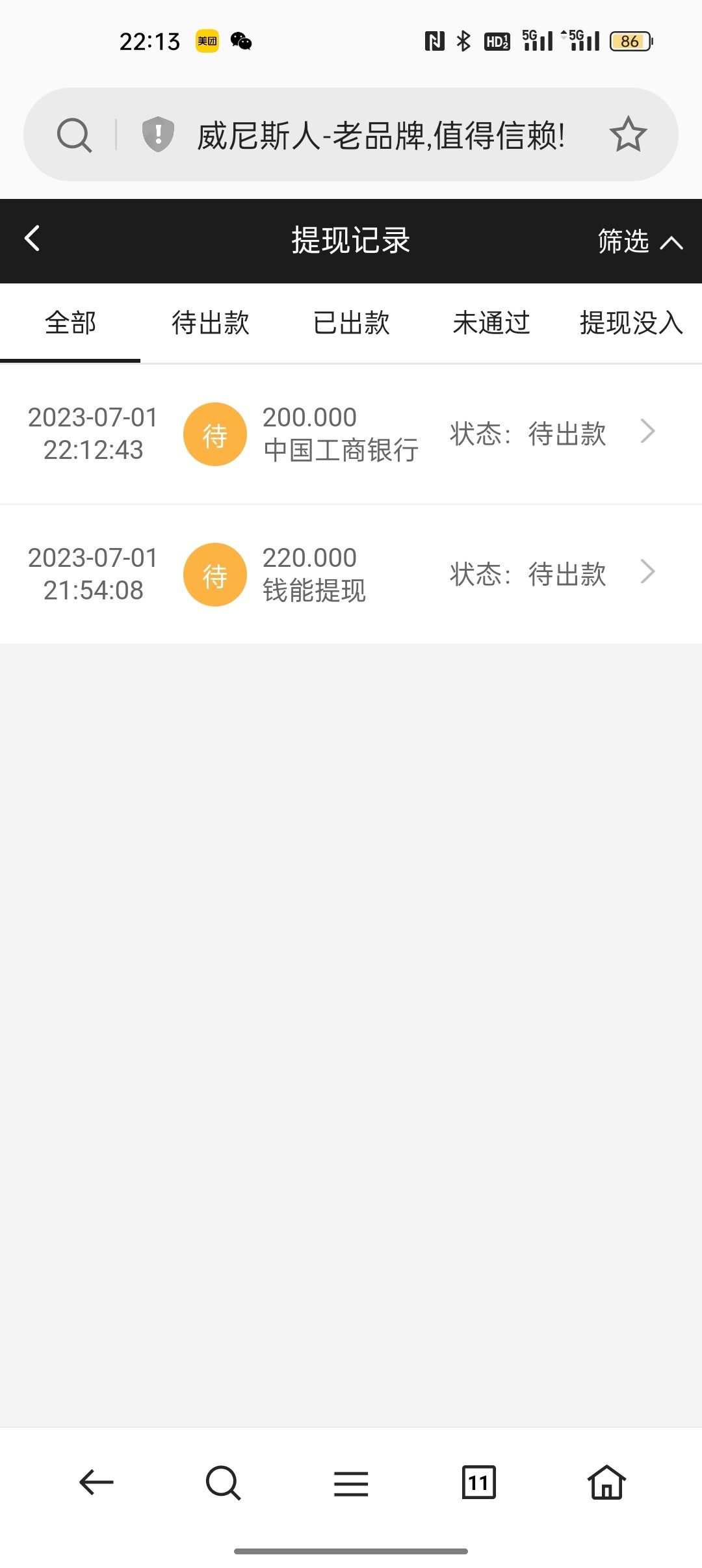黑不黑,提现成功,不到位账