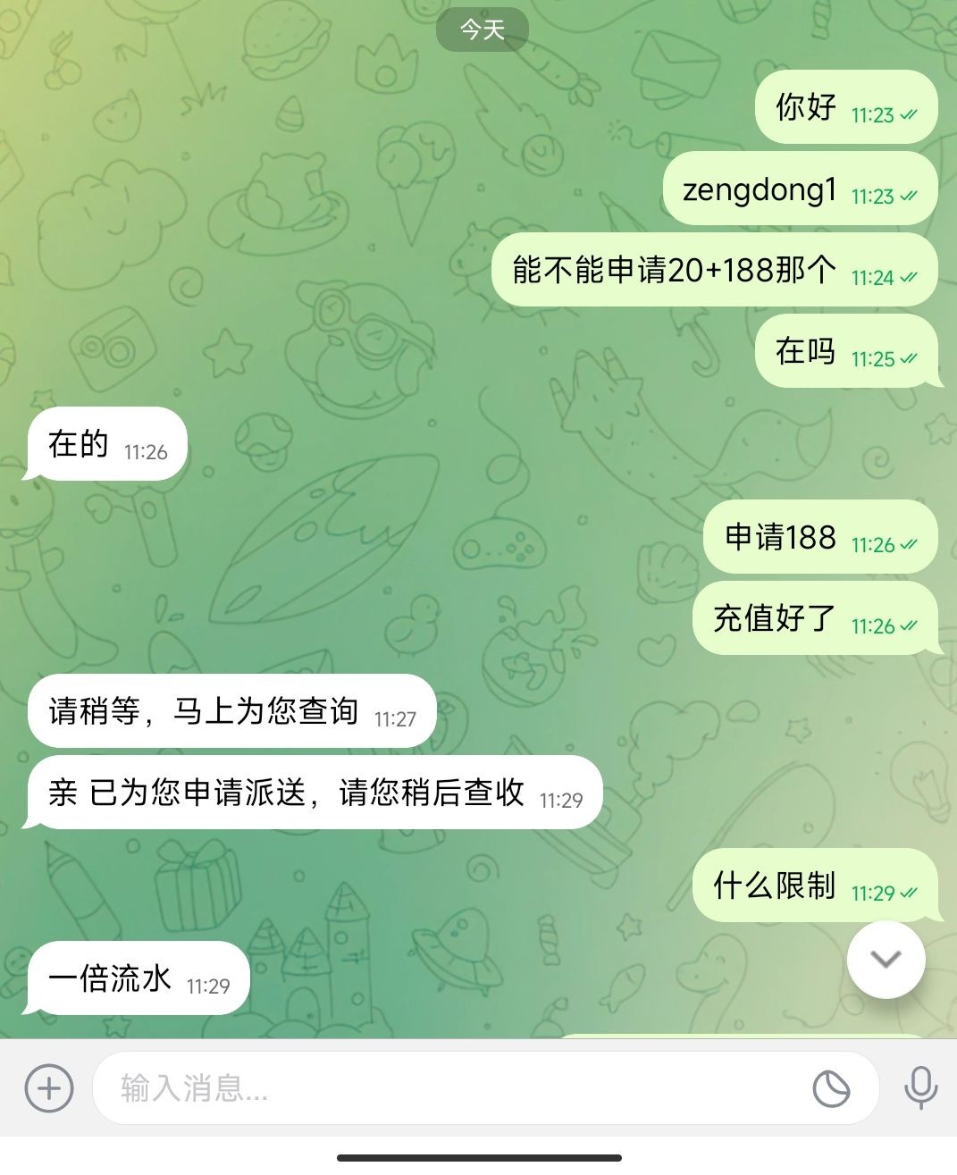 我也不知道,反正活动看见的,我就找客服,然后发了链接换客服,换的发了mt聊天软件客服,充值就送了
