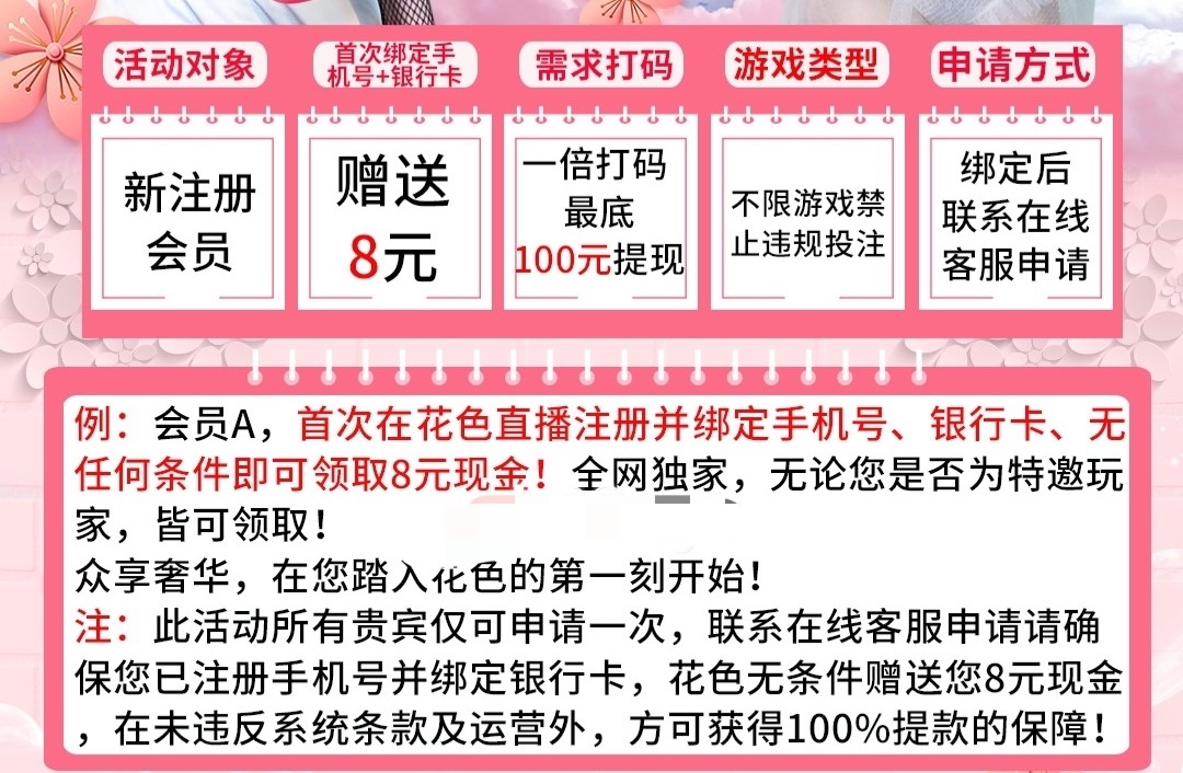 新用户注册绑卡优惠大厅自助申请8彩金,或者联系客服申请,具体规则自行查看一下