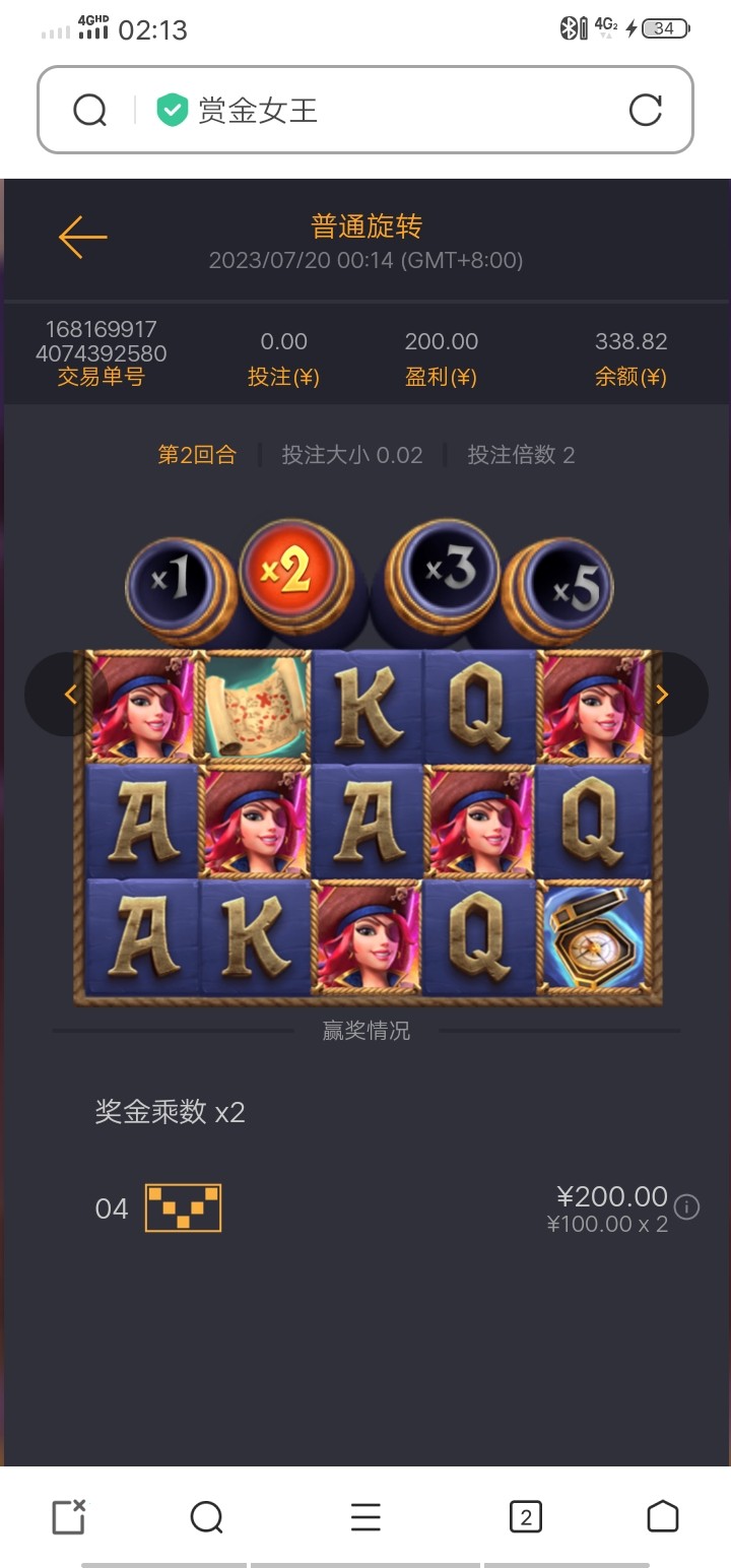 感谢大哥的分享,撸到回馈彩金58,麻将干到70海盗女王出了8毛的5个女王100x2倍直接暴了两百多,,后面零头输掉了了,就提了300,白嫖到账